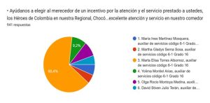 •Encuesta calidad en el servicio y la atención prestada se premia COMEDOR CACOM 02 Regional Llanos Orientales.